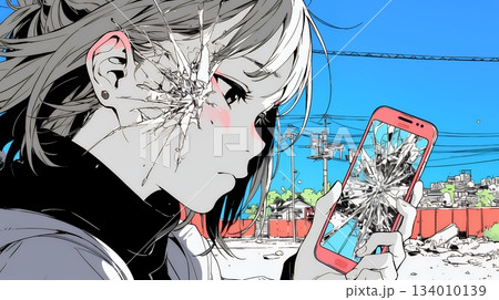 スマホでAIによる問題解決を行う男性(手書き風)3