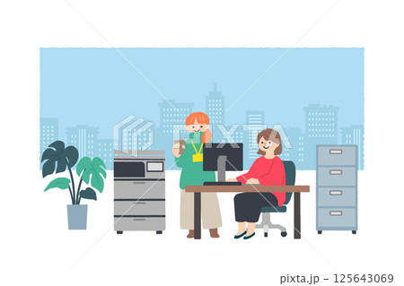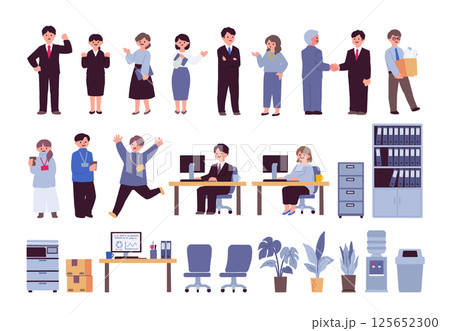 オフィス内で働くビジネスワーカー達の風景をまとめたイラストセット
