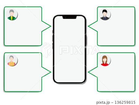 スマホを使うZ世代の若者たちの線画イラスト