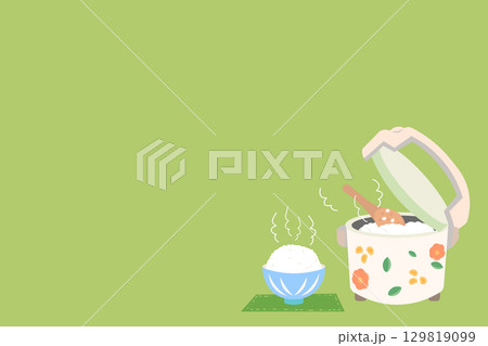 お茶碗によそったご飯と炊飯器で炊いたご飯のイラストセット