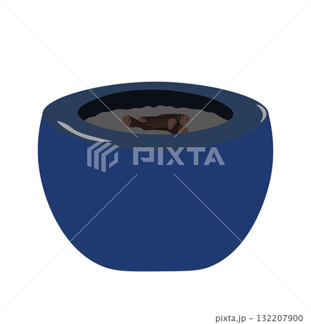 火鉢の中に灰と木炭を入れたイラスト