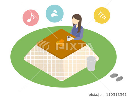 こたつで温まる一人の女性