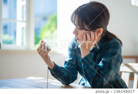 女性が懐中時計を見る