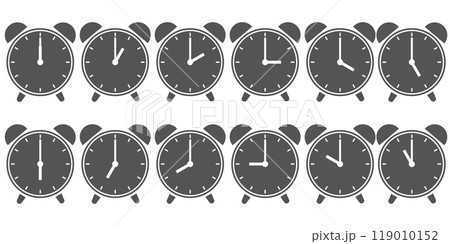 目覚まし時計 時計 時間 アイコン(シンプル・線画・モノクロ)