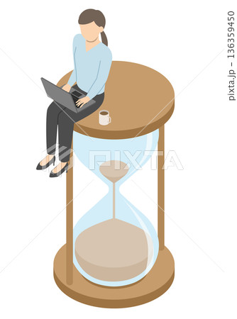 アイソメトリックな巨大な砂時計と人々(時間・期限・歴史)