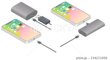 アイソメトリックなレンタル用のモバイルバッテリーのイメージ素材