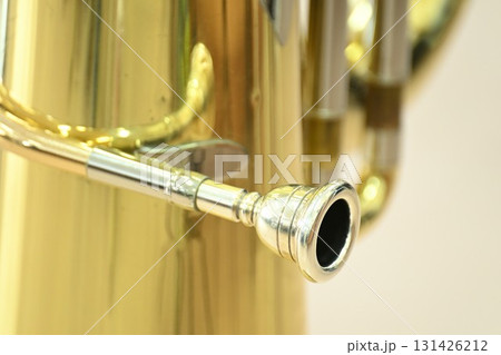 Close-up of a Tuba Sousaphone with reflections - Brass Instrument
