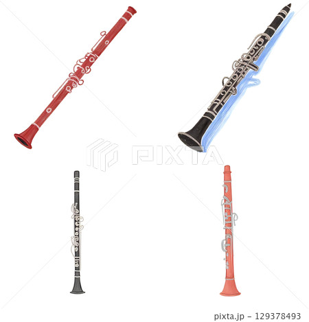 楽器クラリネットのシンプルなアイコンテイストのベクター素材セット