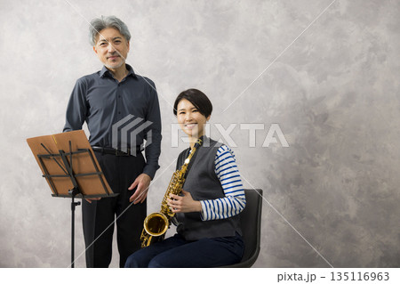 サックスを持つミドルエイジ女性