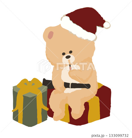 冬の音楽会でオーボエを演奏するクマ|サンタ帽のかわいい動物イラスト