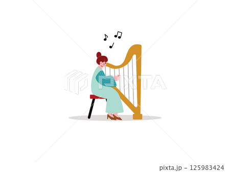 Woman Musician Character Play Harp Musical Instrument Sitting on Stage Vector Illustration