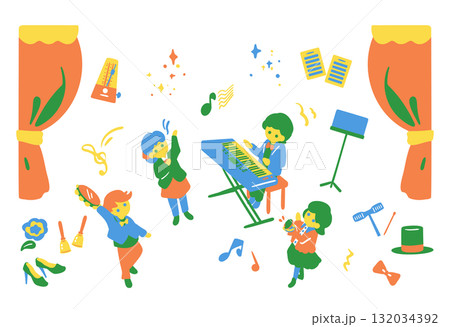 色々な楽器を演奏する子どもたち 演奏会 イラスト