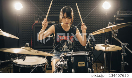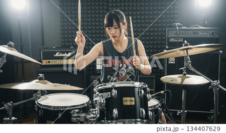 ドラムを叩く女性