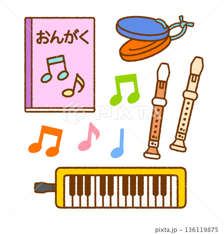 幼稚園や保育園の音楽祭で使う楽器のイメージイラストセット