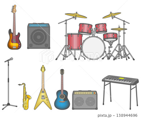 ロックバンドで使う楽器のアイコンセット