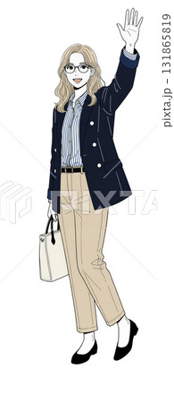 シンプルかわいい手描きの秋コーデ女子のイラスト素材