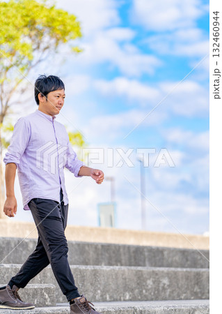 紅葉舞う石畳を歩く革靴|秋、散歩、ファッション