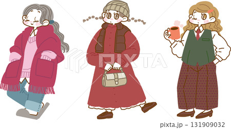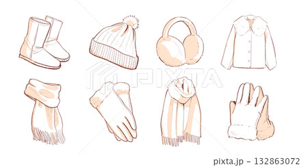 冬の暖かい服飾アイテムセット(塗り)|, コート, ブーツ, ニット帽, イヤーマフ, 冬ファッショ