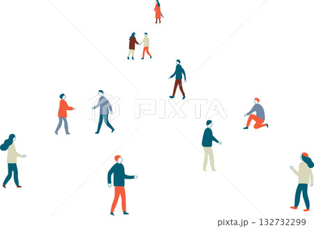 手描き風のゆるい人々のイラスト|冬の街を歩くシンプルな人物素材