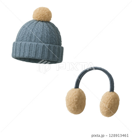青いニット帽&イヤーマフセット(PNG切り抜き)