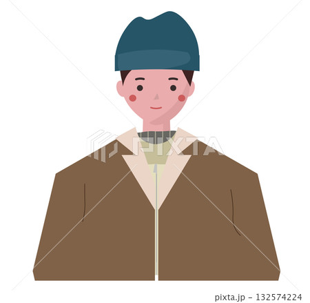 笑顔の冬服を着た男性。ダッフルコートを羽織る男性。温かい服。ベクターイラスト