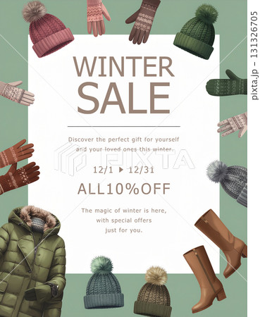 冬のおしゃれなコートや手袋など冬のファッションが彩るウィンターセールチラシ