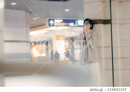 待ち合わせをしながら物思いにふける30代女性