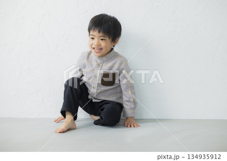 床に座る幼児