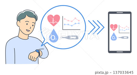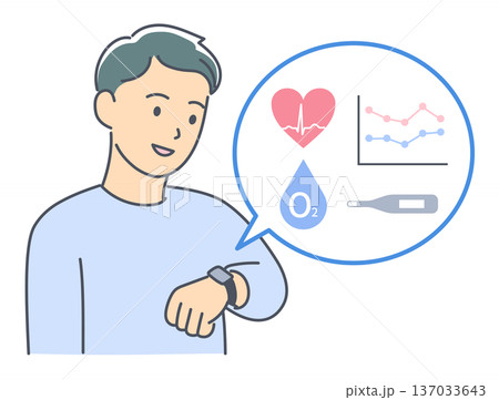 ウェアラブル端末を使い健康状態を確認する男性のイメージイラスト素材