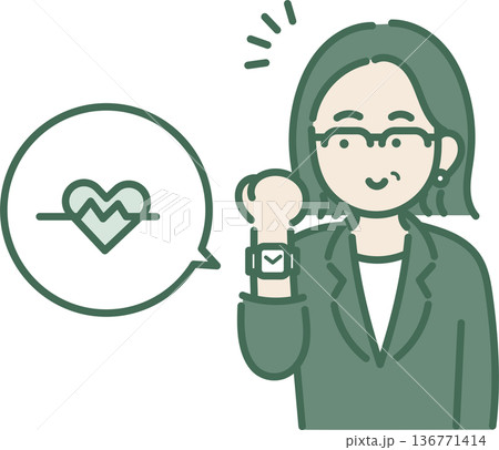 スマートウォッチで心拍確認をする40代女性のイラスト