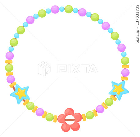 Children's jewelry, friendship bracelets borders. Cartoon round floral frame and seamless border.