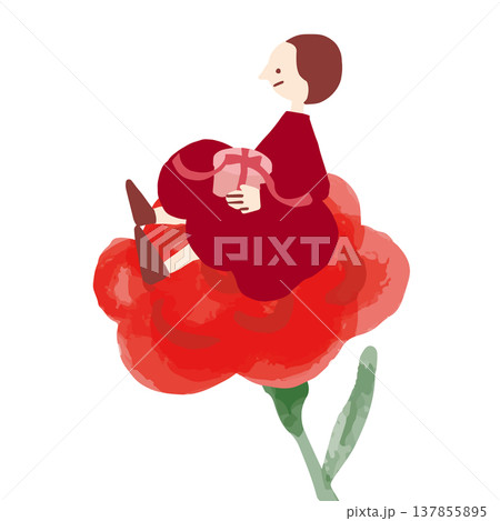 カーネーションに乗るお母さんのイラスト