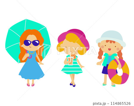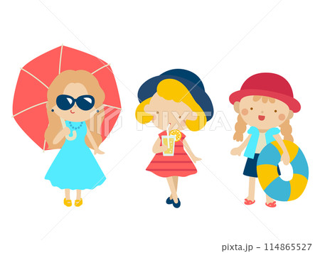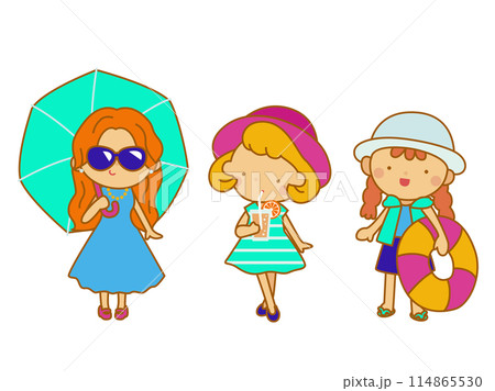 夏休みにお出かけする女の子たち、色違い線あり