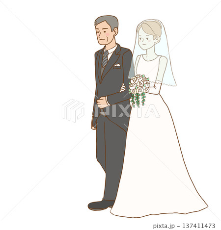 結婚式のカップル シンプルでお洒落な線画イラスト