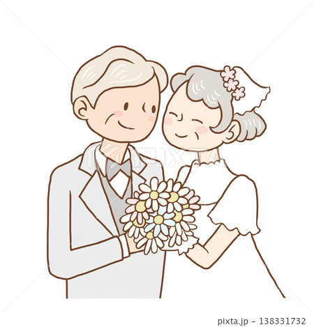 花束を持った熟年新郎新婦