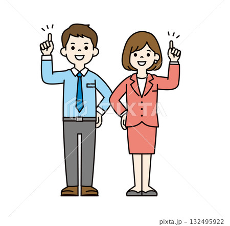笑顔でポイントを伝える、男女のビジネスマンの全身ベクターイラスト素材セット_カラー