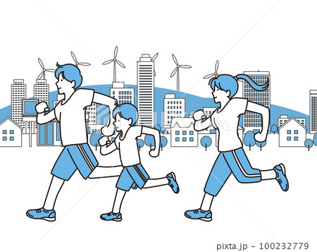 家族でジョギング・ウォーキングをするイラストイメージ