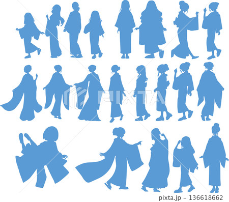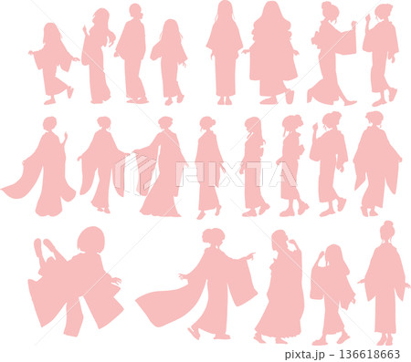 着物を着たレトロ日本人女性 シンプルイラストセット