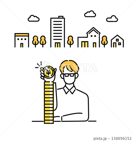 貯金がなかなか増えない、スーツ姿の男性のイラスト