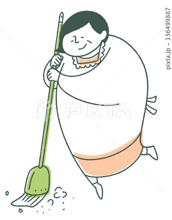 ほうきで掃除をする年配女性 Generative AI
