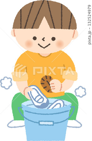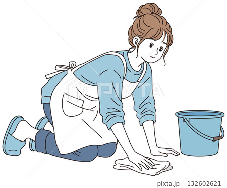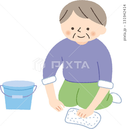 男性 掃除 モップ バケツ 手描き イラスト 素材