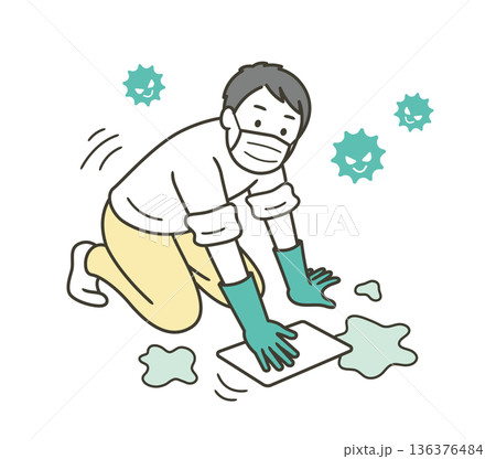 床を雑巾で拭くゴム手袋をつけた男性のイラスト