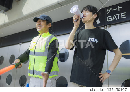 イベント会場で誘導をするスタッフ