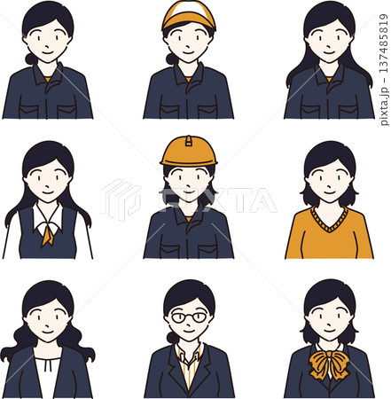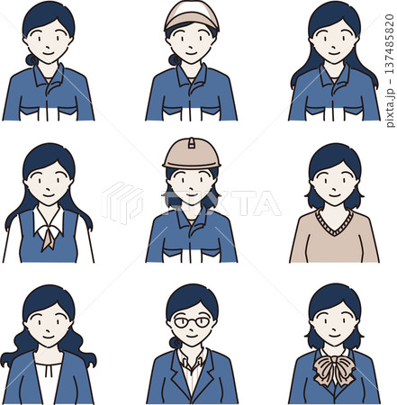 様々な部署で働く女性のイラストセット 紺色バージョン