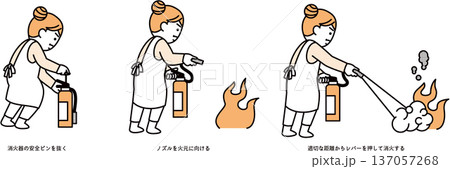 消火器使用方法 消火器の使い方の説明看板 張り紙 注意書きのイラスト 日本語