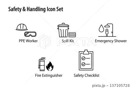安全と取り扱いのシンプルなベクターアイコンセット。