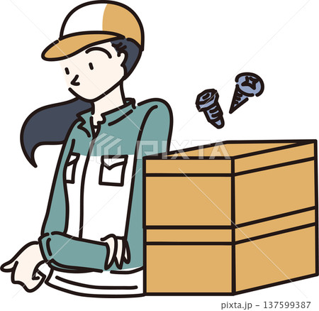 部品工場のラインで箱詰め作業をするミドルからシニア世代の男性と女性