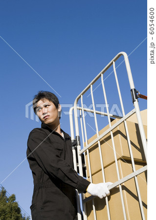 台車を運ぶ若い男性