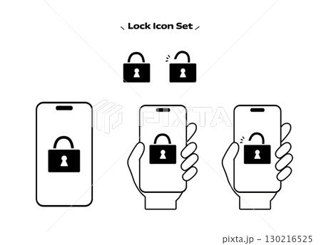スマホと鍵アイコンのセット|セキュリティ・ロック・解錠イラスト