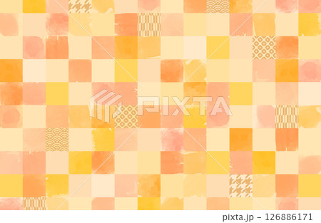 暖色系水彩タイル背景ベクターイラスト 和風 和柄 秋